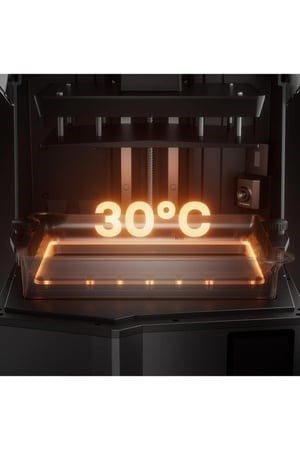 Düşük sıcaklıkların baskı kalitesini bozmasına izin vermeyin. EntegreIsıtma Tankı, reçineyi sadece 26 dakikada ideal 25 °C sıcaklığa ulaştırarak baskı hatalarını minimize eder ve malzeme akışkanlığını optimize eder.